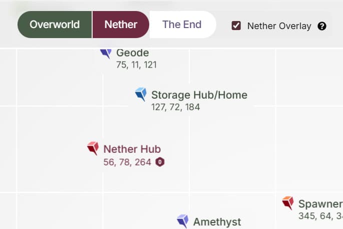 Plan portal locations and nether highways with ease using Nether Overlay view.